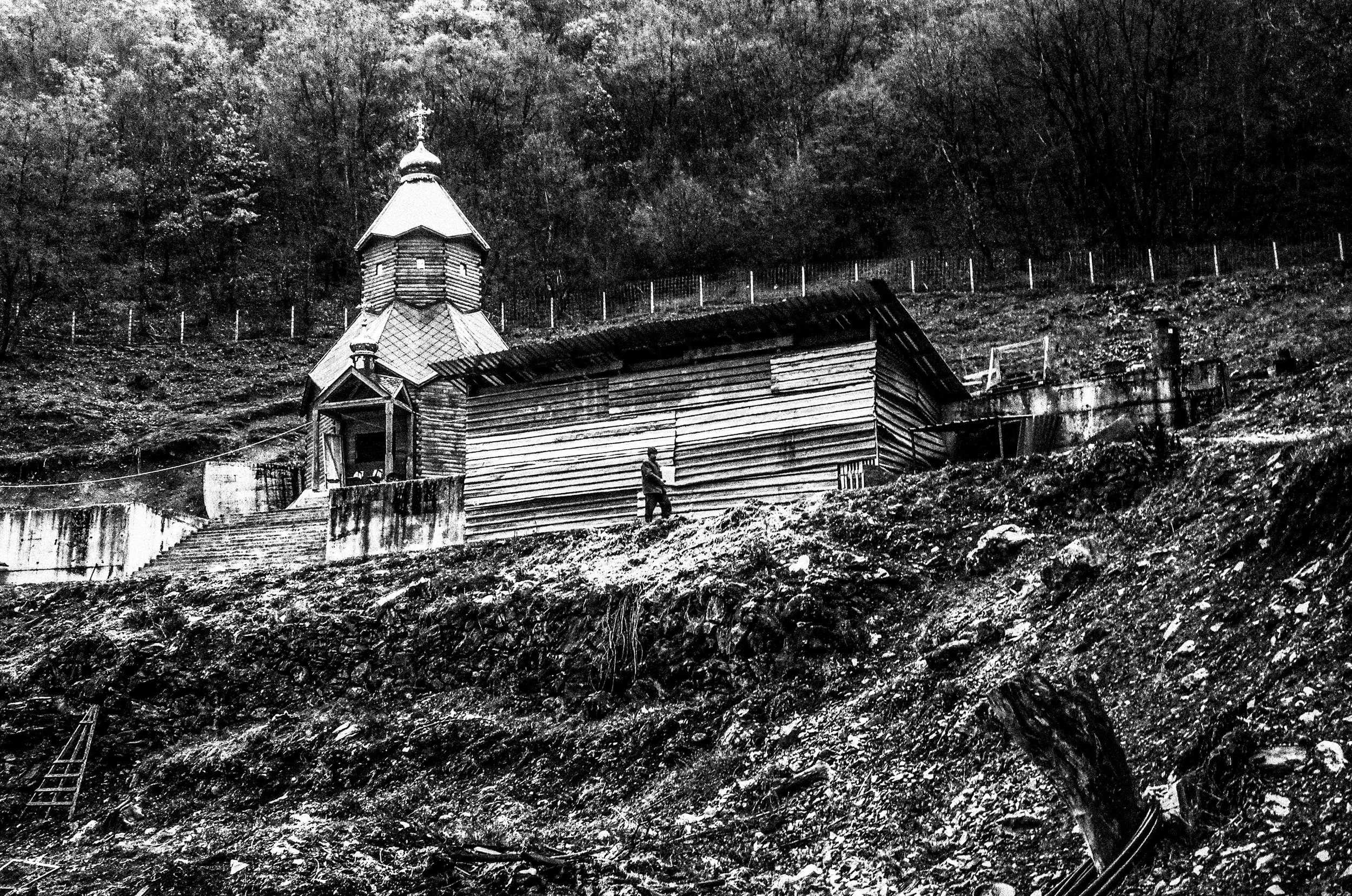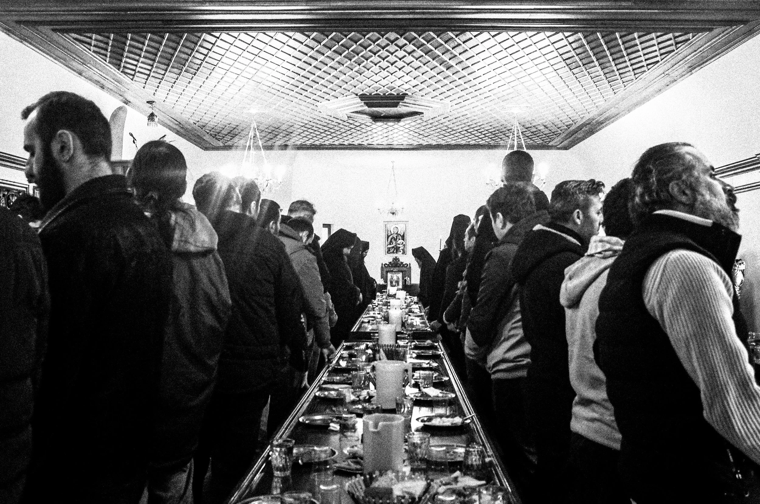 We continued on until we arrived at the bottom of the hill where the monastery restaurant sits. Father Efrem called to have espresso brought out to us as we chatted with two workers breaking rocks for the new church being constructed at the monastery. I tried to ignore how I couldn’t feel my hands at this point as we stood there awaiting the drinks. The engine of the tractor nearing the bottom of the hill was just loud enough to hear over the blowing wind. Coming around the last curve of the road, Toni was walking and wiping his head. Father Efrem called to order more espresso for the two as they made their way toward us. He was bleeding from his forehead. Moments before, as he was walking behind the trailer to pick up rocks that had fallen out, one shot up from the tractor’s wheel and struck him. He stood there in the cold blowing wind and drank a cup of espresso as his face bled. The blood dried before it could reach his piercing eyes. I had never seen eyes like Toni’s. They were deeply black and unforgiving.
